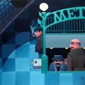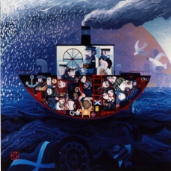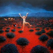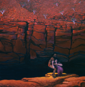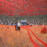 After a long period of working on A LIFE , Christopher began working on a new Series TRAVELLING MAN which was inspired by another trip back to the Red Centre in 2004. Travelling through South Australia and around the McDonnell Ranges Christopher returned to his first love, the desert. New paintings from this journey began appearing in Galleries including ART GALLERY COLLECTIONS at Surfers Paradise. In June 2005 the painting THREE GREEKS DRINKING UZO picked up an award at the NudgeeArt Prize and MAIL MAN DOWN was short listed for the OUTBACK ART PRIZEin 2005. The final Exhibition including works about China, Japan and the USA were shown at CWM GALLERIES and opened by Andrew Knott in March 2006.